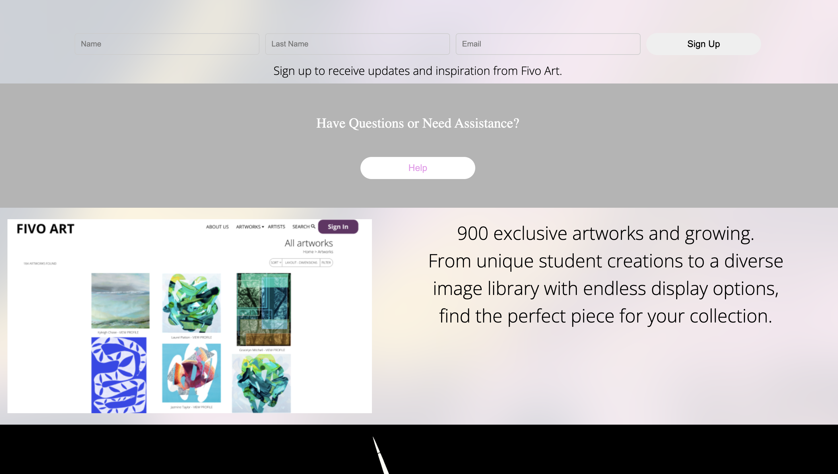The final gallery design included an interactive profile page, all forms of art and the ability to select art based on your preference as suggested from feedback from the survey. The team took on continuos feedback to ensure the gallery was welcoming to all students.